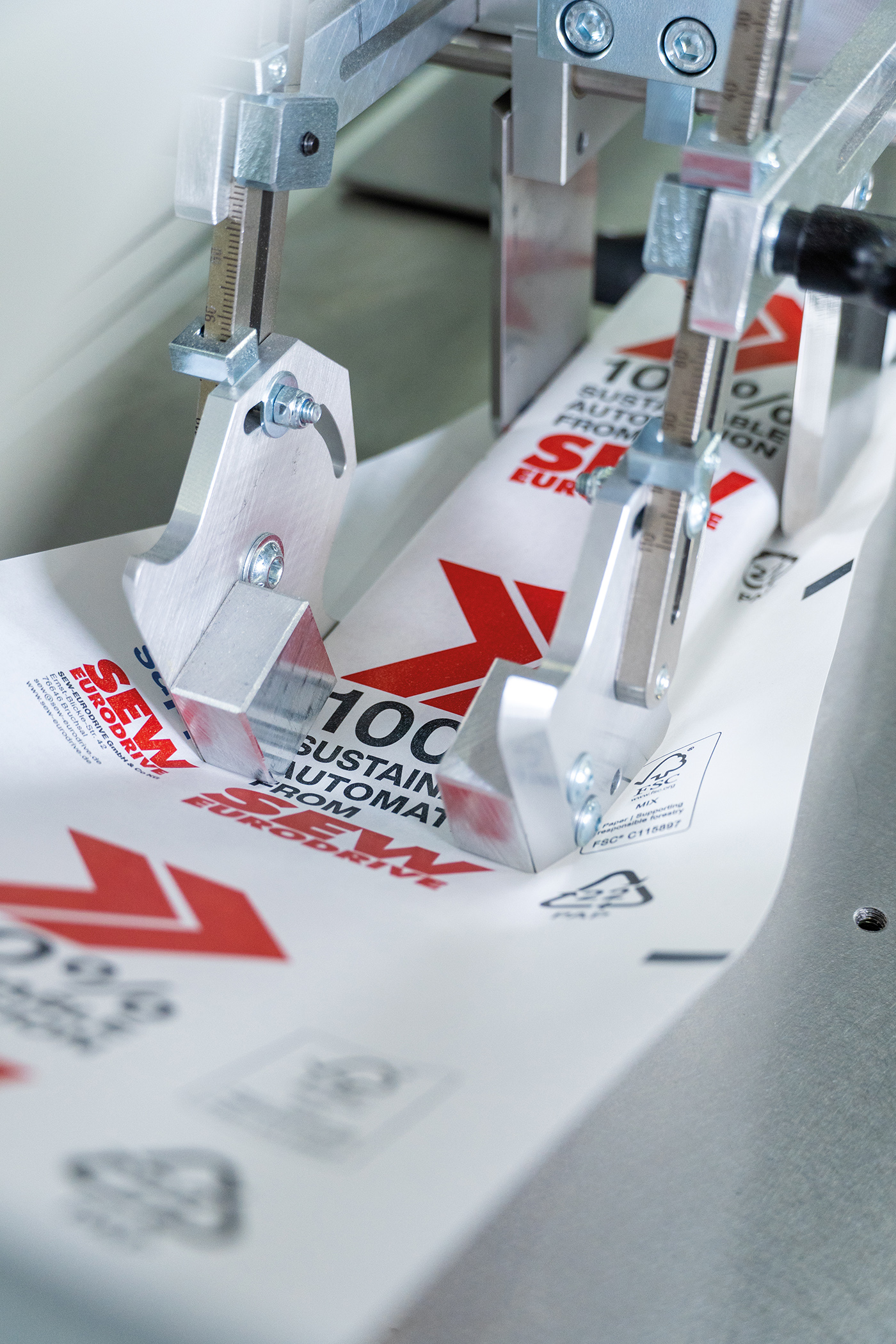 Vom Servomotor über Getriebe, Umrichter, Steuerungstechnik, Speichertechnik bis hin zum Stepper konnte die gesamte Technik der Maschine aus dem Automatisierungsbaukasten Movi-C von SEW-Eurodrive verwendet werden. Die neuen Schrittmotoren werden über die Busklemme aus dem Movi-PLC-I/O-System C angesteuert. Das StarterSet 616 bildet als modulares Paket aus Komponenten und Software die Grundlage des Systems. Erweiterungen dazu waren die Power and Energy Solutions sowie Sicherheitstechnik von SEW-Eurodrive. „Das Ergebnis ist ein deutlich gesenkter Energieeinsatz. Zudem lässt sich die Verpackungsmaschine sowohl für papierbasierte Packstoffe als auch für Folienverpackungen einsetzen und erfüllt damit flexibel unterschiedliche Kundenanforderungen“, sagt Alexander Hack. Das ist ein wichtiger Punkt für Hugo Beck in einem schnelllebigen Markt wie der Verpackungsindustrie und den sich ständig ändernden Marktanforderungen.