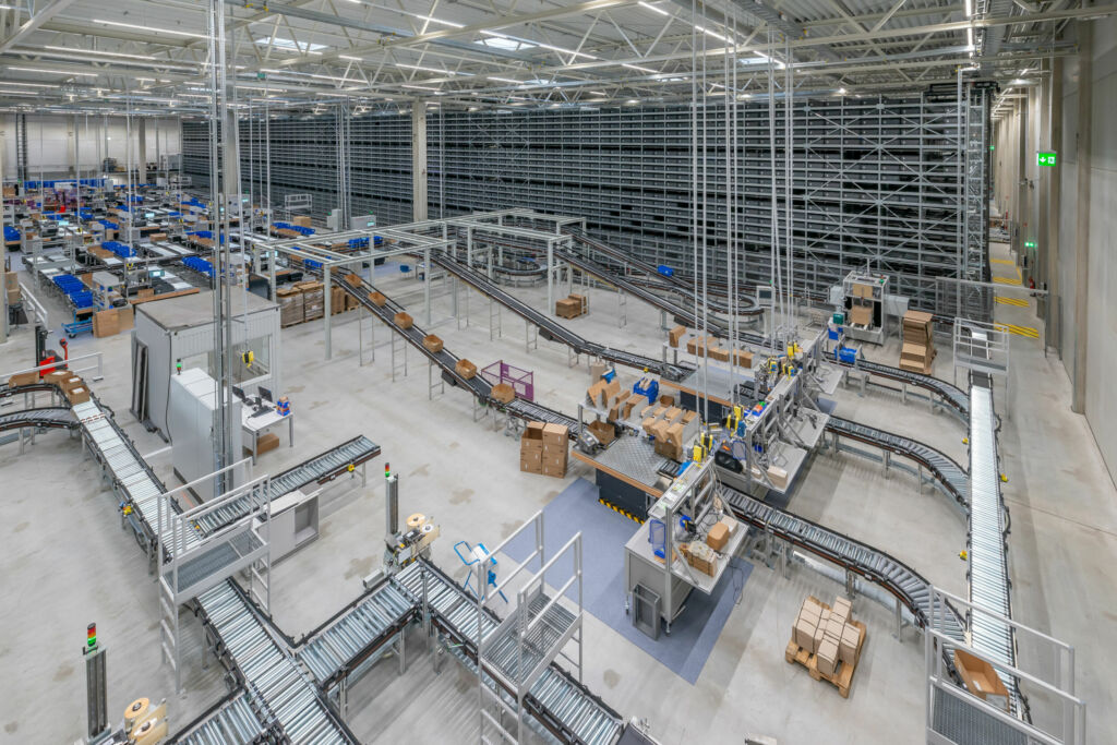 Entsprechend ist die Fördertechnik auf den Transport beider Ladungsträger ausgelegt. Nach Abschluss der Kommissionierung führt die Fördertechnik die Anbruchbehälter zurück zu den Übergabeplätzen im AKL. Zielbehälter und -kartons gelangen über die Förderstrecke an die vier Packplätze. Die versandfertigen Ladungsträger werden von der Fördertechnik in den Versandbereich geführt. Über automatisierte Gewichtkontrollen in der Förderstrecke wird per Abgleich mit Auftrags- und Stammdaten die korrekte Kommissionierung überprüft. Fehlerhafte Kartons werden an einen NiO-Loop ausgesteuert. Anschließend durchlaufen die Kartons einen Kartonverschließautomaten, Behälter werden gedeckelt bevor abschließend auf der Förderstrecke eine automatische Etikettierung erfolgt. „Die gesamte Fördertechnik ist nach einem Bypass-Konzept erstellt worden“, sagt Weisshap. „Dadurch können sich AKL und alle Stationen bei Bedarf wechselseitig untereinander bedienen, um etwa Rücklagerungen schneller durchzuführen, Staus oder kurzfristige Komponentenstörungen auf der Anlage zu vermeiden beziehungsweise zu umgehen.“