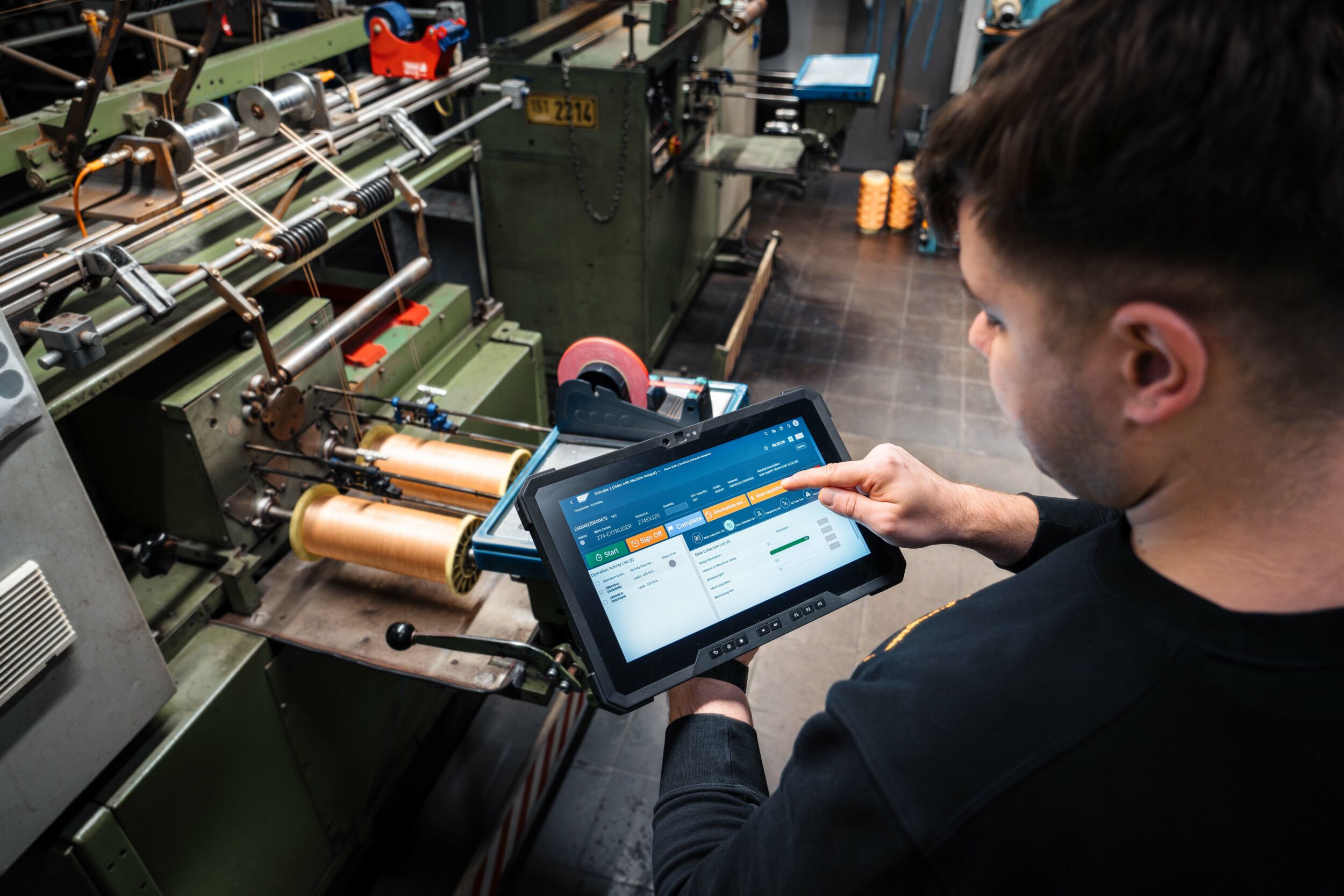 Ein wichtiges Merkmal der mit dem Piloten umgesetzten MES-Anwendung ist die Auftragsfeinsteuerung auf Schichtführerebene – gelöst mit der SAP-App ‚Dispatching & Monitoring‘. Anhand einer zentralen Oberfläche können Aufträge per Drag&Drop oder automatisiert mit KI-Unterstützung unter Berücksichtigung der tatsächlichen Kapazitäten ein- und umgeplant werden. Indem das System Live-Daten aus der Produktion erfasst, kann der Auftragsfortschritt in Echtzeit überwacht werden, damit die Verantwortlichen bei unvorhergesehenen Ereignissen in der Fertigung direkt reagieren können. Nach Feinsteuerung der Aufträge erfolgt die digitale Anzeige einer Arbeitsvorratsliste für die Werkerinnen und Werker an der Linie an den sogenannten Production Operator Dashboards (PODs), wodurch Arbeiten wie das Drucken, Verteilen, Suchen, Austauschen und Scannen von Fertigungsunterlagen entfallen. Ein weiterer Effekt der papierlosen Produktion sind reduzierte Fehlerquellen, da kein aufwendiges Dokumentenhandling mehr stattfindet.
