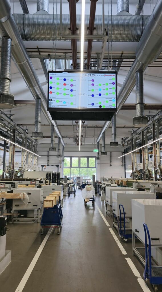 Die regelmäßig aktualisierenden Dashboards ermöglichen den Mitarbeitern jederzeit und von jedem Punkt der Halle aus einen optimalen Überblick über den Status quo der laufenden Produktion.