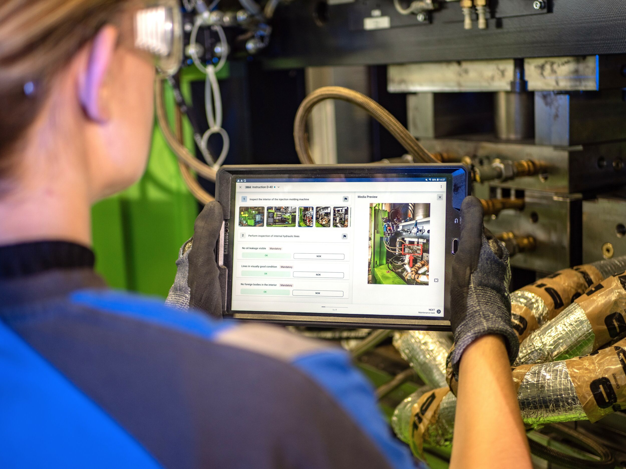 Connected-Worker-Plattformen können Fertigungsmitarbeiter hier unterstützen, sodass Informationen korrekter Form und zur richtigen Zeit am richtigen Ort verfügbar sind. Produktspezifische Daten werden direkt aus den unternehmenseigenen Systemen wie etwa dem MES oder ERP gezogen und strukturiert und variantenspezifisch zur Verfügung gestellt. Aus der daraus entstehenden Transparenz können Unternehmen KVP-Maßnahmen ableiten.