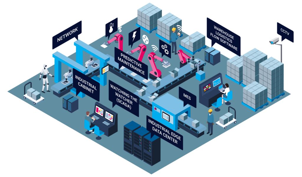 So bietet die Firma Paessler eine Monitoring-Software an, die eine zentralisierte Überwachung von Produktionsprozessen in Echtzeit ermöglicht. Automatische Alarme und Trendanalysen sollen dazu beitragen, Ausfallzeiten von Anlagen zu senken und ihre Effizienz zu erhöhen. Die Kombination der Systeme liefert Daten für Entscheidungen, um etwa die Ressourcennutzung zu verbessern. Sicherheitsrelevante Ereignisse können überwacht werden, um die Betriebssicherheit zu erhöhen.