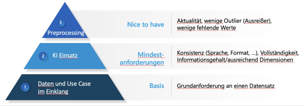Im Grunde basieren die Anforderungen an die Qualität eines Datensatzes darauf, dass die reale Verteilung möglichst gut im Datensatz abgebildet wird. Dazu braucht es in erster Linie eine Übereinstimmung der Daten und des Use Cases. Vereinfacht formuliert bringt es nichts, etwa ein KI-Modell mit Katzenbildern darauf zu trainieren, Hunderassen zu erkennen. In der Übereinstimmung von Daten und Use Case liegt somit die Basis für die Datenqualität in den meisten Machine Learning Anwendungen.