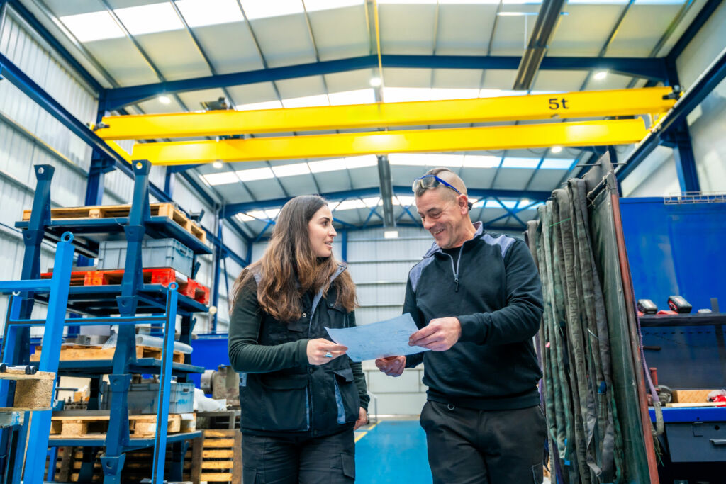 Team of engineers working in a cnc logistics factory