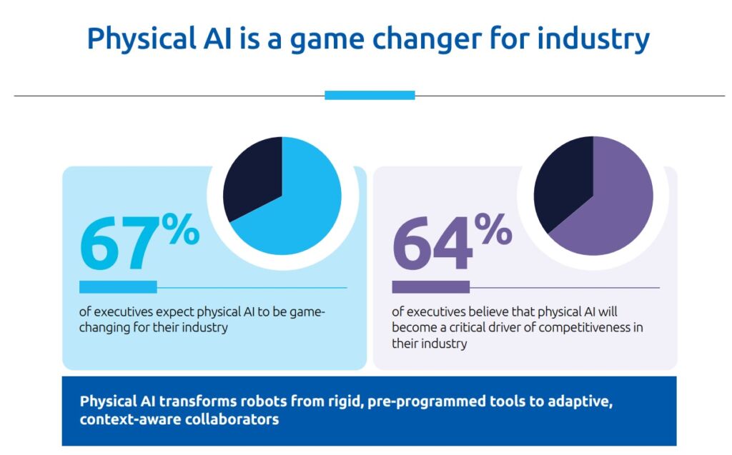 Capgemini hat eine Studie zu Physical AI veröffentlicht. Das Capgemini Research Institute beschreibt Physical AI darin als künstliche Intelligenz, die über strikt vorgegebene Prozesse hinaus freier in der physischen Welt agieren kann. Laut Unternehmen untersucht die Studie die Auswirkungen auf Robotik und das Potenzial für Unternehmen. Befragt wurden 1.678 Führungskräfte aus 16 Ländern und 15 Branchen. Die Erhebung fand im Januar und Februar 2026 statt.