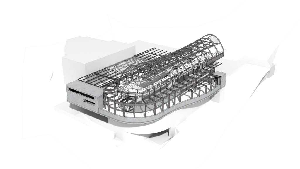 Die ETFE-Membranen fertigte der Hersteller Temme Obermeier aus Rosenheim, mit dem IN-Metall bei Membranbauten regelmäßig zusammenarbeitet. Für das Bauwerk mussten 33.000 Profile konstruiert werden, von denen kaum zwei identisch waren. Die Stahlapplikation beschleunigte die Arbeit deutlich: Profile können nach eigenen Vorgaben definiert und zur Wiederverwendung als Favoriten gespeichert werden. Als praktisch erwies sich die Sweep-Funktion, mit der sich Profile an gebogene Linien anlegen lassen. Neben verschiedenen Optionen, Profile zu definieren, konnte Daniel Windegger auch die gewünschten Verbindungen mit wenigen Klicks konstruieren. „Ohne die App hätten wir das nie in dieser kurzen Zeit geschafft“, resümiert Windegger.